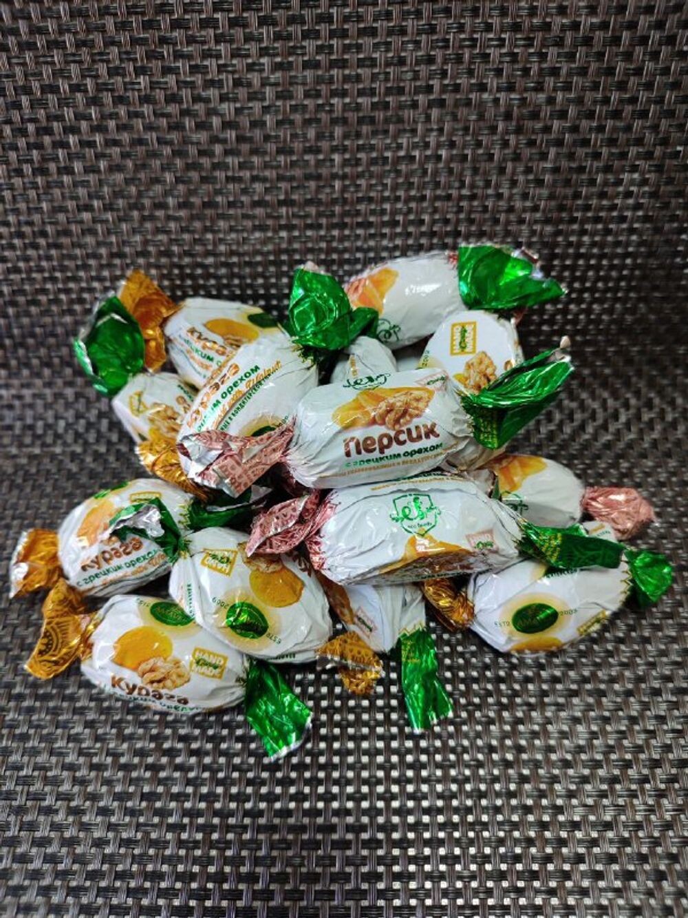 Персик с грецким орехом в шоколадной глазури